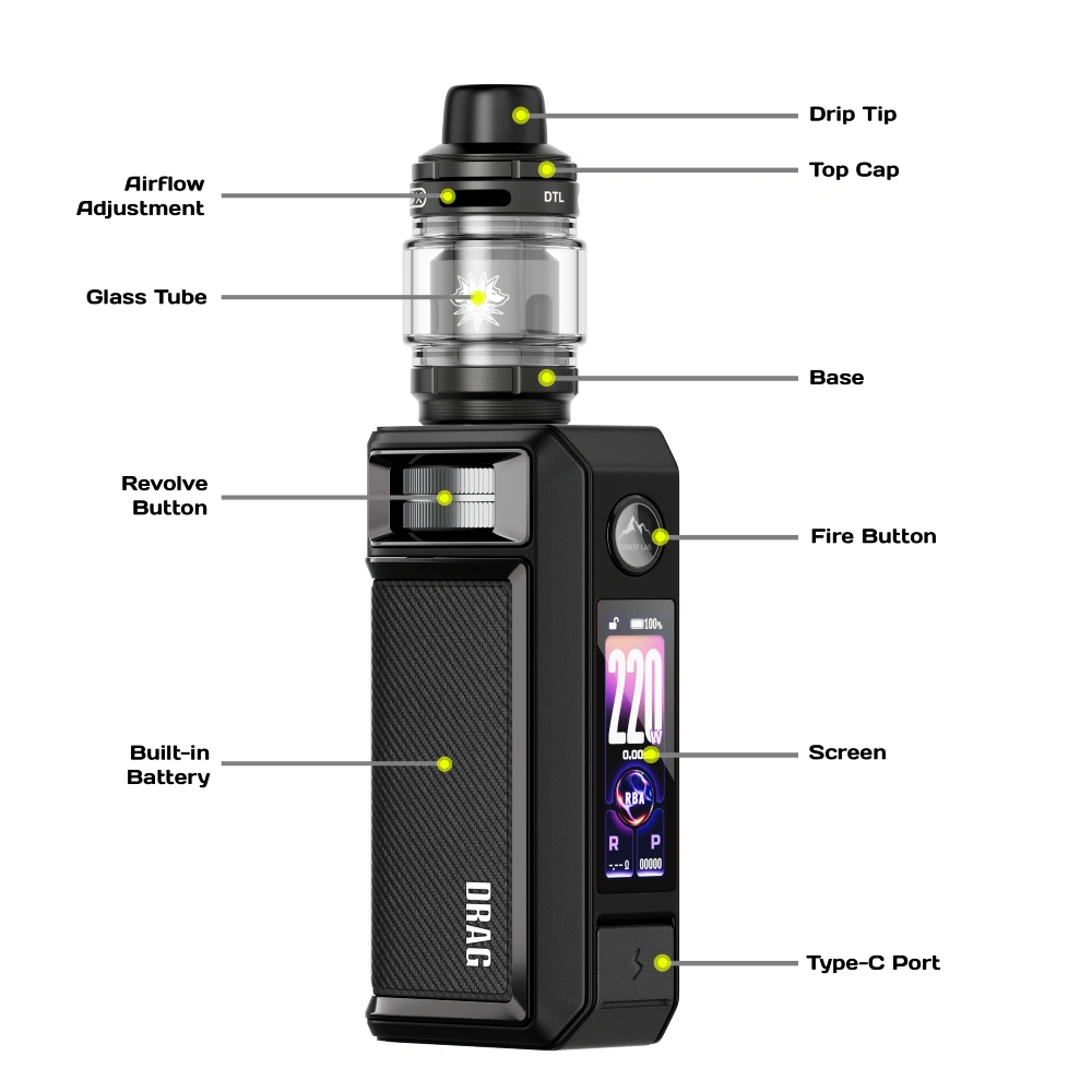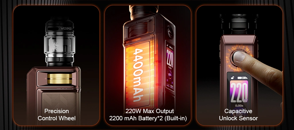 (2) Built-in 4400mAh High-Capacity Battery: Supports a wide power output range of 5-220W,meeting the demands of high-intensity use. The integrated battery makes full use of the device's internal space, enabling a more compact design. This reduces potential contact instability caused by frequent battery replacement, lowering the risk of accidental detachment or short circuits. At the same time, it increases battery capacity within a limited volume, extending usage time.