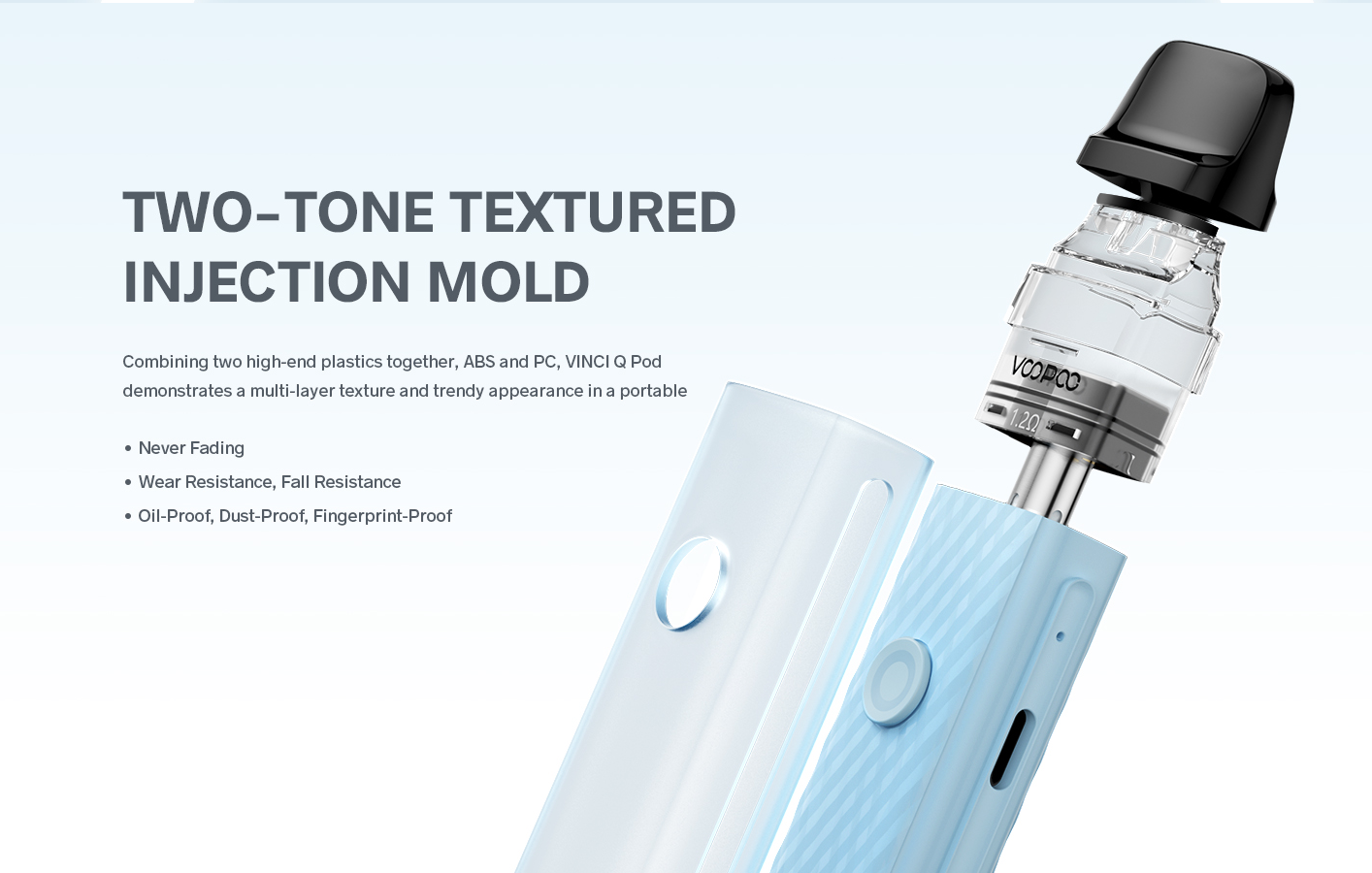The VINCI Q POD is the perfect blend of ABS and PC that is resistant to wear, fade, fall, grease, dust and fingerprints. No matter how long you have been using it, it still can maintain a fresh appearance. In addition, owing to the lightweight body, you can experience it at any time to enjoy the joy brought by the compact body.