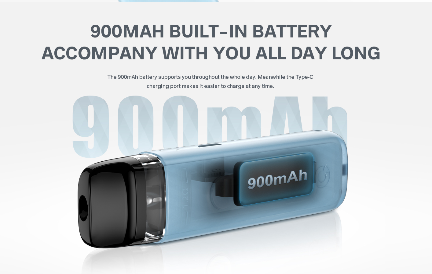 The 900mAh large capacity battery is integrated into the compact body, so that you can enjoy the whenever and wherever possible, without worrying about battery life for a whole day. Thanks to the upgraded Type-C interface,