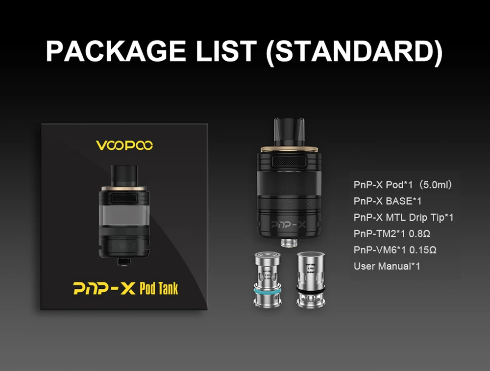 Coil Resistance:PnP-TM2 0.8ohm Coil, PnP-VM6 0.15ohm Coil(included)